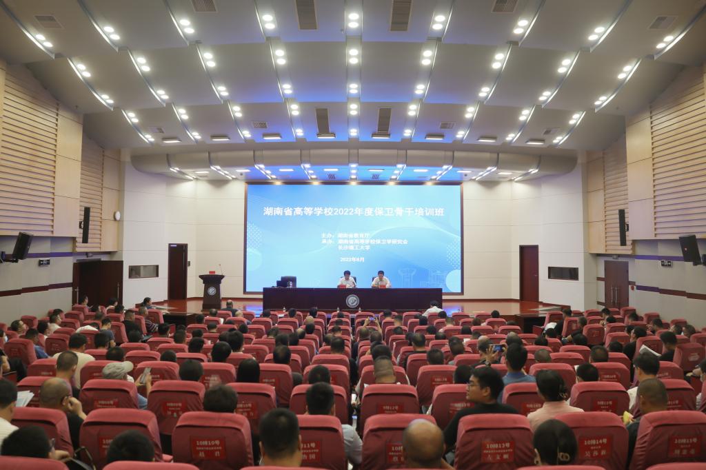 8月16日上午,开班仪式在长沙理工大学图书馆报告厅举行。长沙理工大学党委委员、副校长钱国平、中国高等教育学会保卫学专业委员会秘书长、湖南大学保卫部部长谭琳等领导和嘉宾出席。钱国平代表学校致欢迎辞,他表示,长沙理工大学高度重视安全稳定工作,落实安全常态化系列举措,全力推进平安校园建设。希望以此次培训班为契机,各高校互鉴共享宝贵经验。长沙理工大学保卫处治安科科长刘云作学员代表发言。省教育厅维稳办副主任张轶作培训动员,他指出,当前国际国内形势复杂严峻,保卫干部要“知其所来”,努力提升履职尽责的能力;要“晓其所在”,将个人发展融入高等教育高质量发展的新征程中;要“明其所往”,在培训中多学习思考、更新理念,回到工作岗位学以致用,提高工作实效。