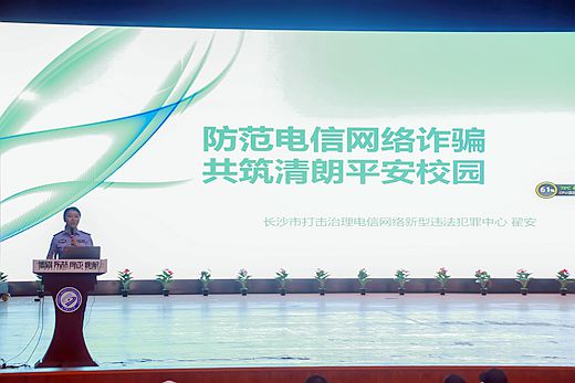长沙市打击治理电信网络新型违法犯罪中心综合组组长翟安从五个方面阐述了电信诈骗:什么是电信网络诈骗、电信网络诈骗的特点、当前的严峻形式、并举例说明了当前校园电信网络诈骗的常见类型以及如何防范电信网络诈骗。