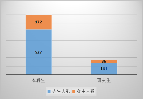 2.性别构成:硕士研究生中男生141人,女生36人;本科毕业生中男生527人,女生172人。
