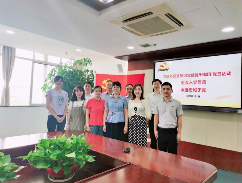 为庆祝中国共产党成立99周年,进一步增强党支部的凝聚力和战斗力。7月1日上午,党政办党支部在一办四会议室组织开展庆祝建党99周年“重温入党誓词,永远忠诚于党”主题党日活动。党委书记付宏渊以普通党员身份参加活动,活动由支部书记周艳红主持。