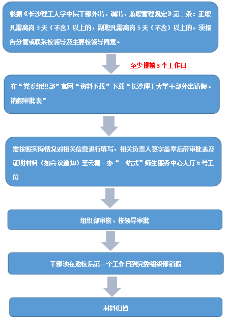 下载专区网址:党委组织部—资料下载—长沙理工大学干部外出请假、销假审批表