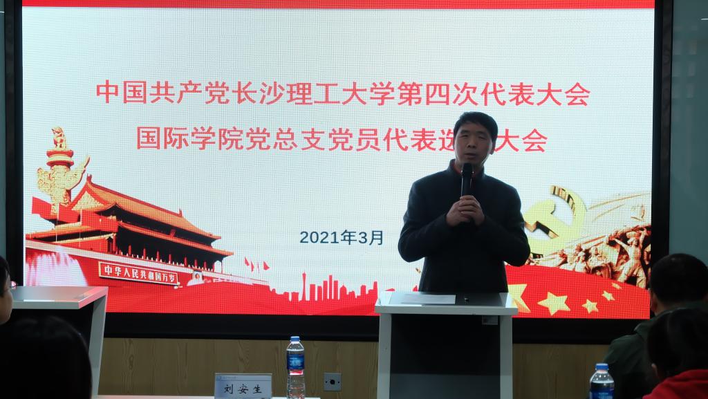 3月9日下午,国际学院党总支在新能源1号楼404室召开全院党员大会,选举出席中共长沙理工大学第四次党代会代表。会议由党总支书记刘安生主持,全院师生党员参加大会。