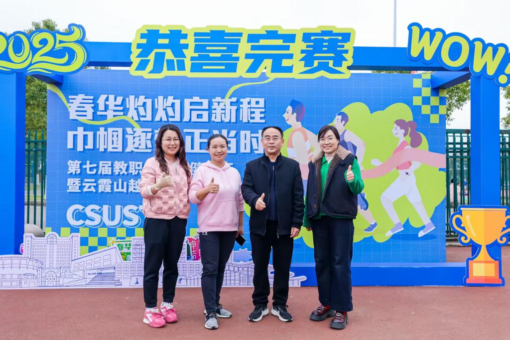 校党委副书记、工会主席方琼致开幕词,鼓励全体长理人以奔跑者的姿态,在各自的赛道上全力冲刺。活动中,我院的老师们兵分两路,环校健步行组途径各大教学楼、云影湖、年轮广场等校园标志性建筑,尽享沿途春色如画;云霞山越野组从云霞山脚下攀登直上,矫健的声影穿梭于山林之间,领略自然野趣的治愈。沿途“巾帼芳华 强国有我”“幸福长理 扬帆奋进”“时不待我 只争朝夕”等主题打卡点都留下了国际人的昂扬姿态。