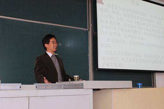在历时1个半小时的讲座中,陶教授把理论与自己的亲身科研实践结合,深入浅出地报告了衰老与抗衰老领域的新成果和新进展,并详细回答了师生的提问,让师生对这一科研领域有了深刻的了解。报告结束时,师生以热烈的掌声对陶钧教授的精彩报告表示感谢。