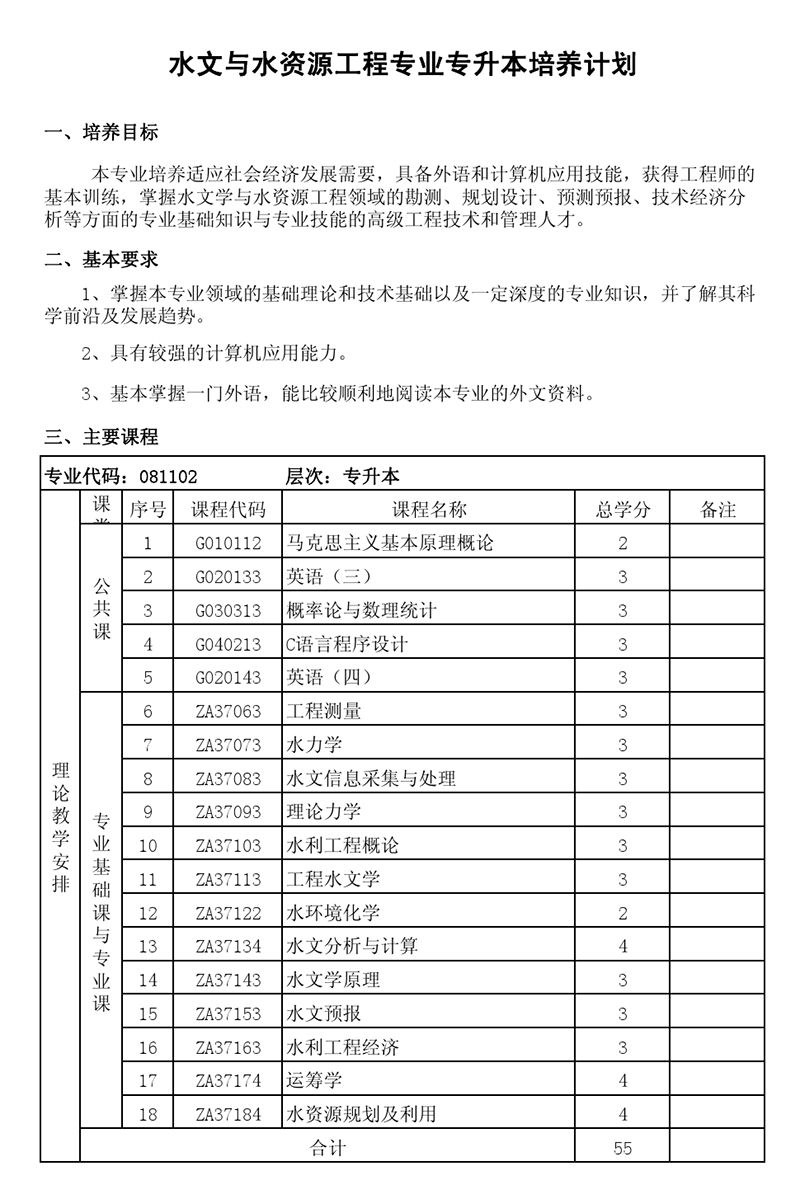 本科培养计划-专业代码:081102 水文与水资源工程专业