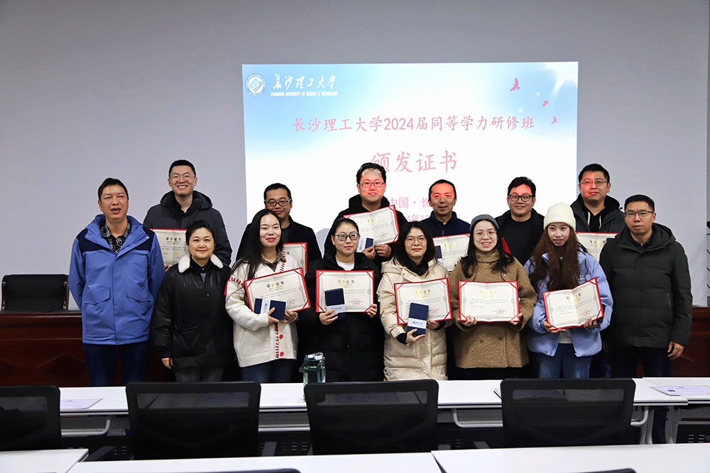2024年12月21日,长沙理工大学2024届同等学力研修班结业仪式在金盆岭校区隆重举行,结业专业为统计学、设计学两个专业。继续教育学院副院长刘英姿、继续教育学院培训部莫世民主任、计算机与通信工程学院廖年冬,出席了结业仪式。