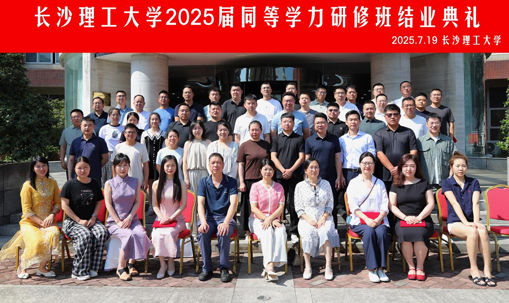 7月19日上午,长沙理工大学2025届同等学力研修班结业典礼在云塘校区国际交流中心举行。交通运输工程、土木工程两个专业共137名学员顺利完成课程学习,即将进入申硕论文阶段。继续教育学院副院长郑咏梅、交通学院党委委员兼国家工程研究中心副主任张锐、继续教育学院培训部主任莫世民出席典礼。