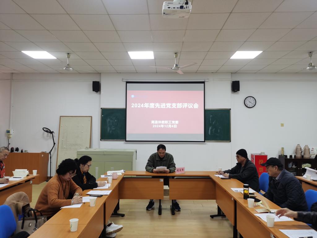 12月4日,在金盆岭校区五教405B教室,离退休教职工党委召开2024年度先进党支部述职评议会,离退休教职工党委委员、离退休党支部书记、离退休中心支部联系人参加,会议由离退休教职工党委书记徐亮主持。