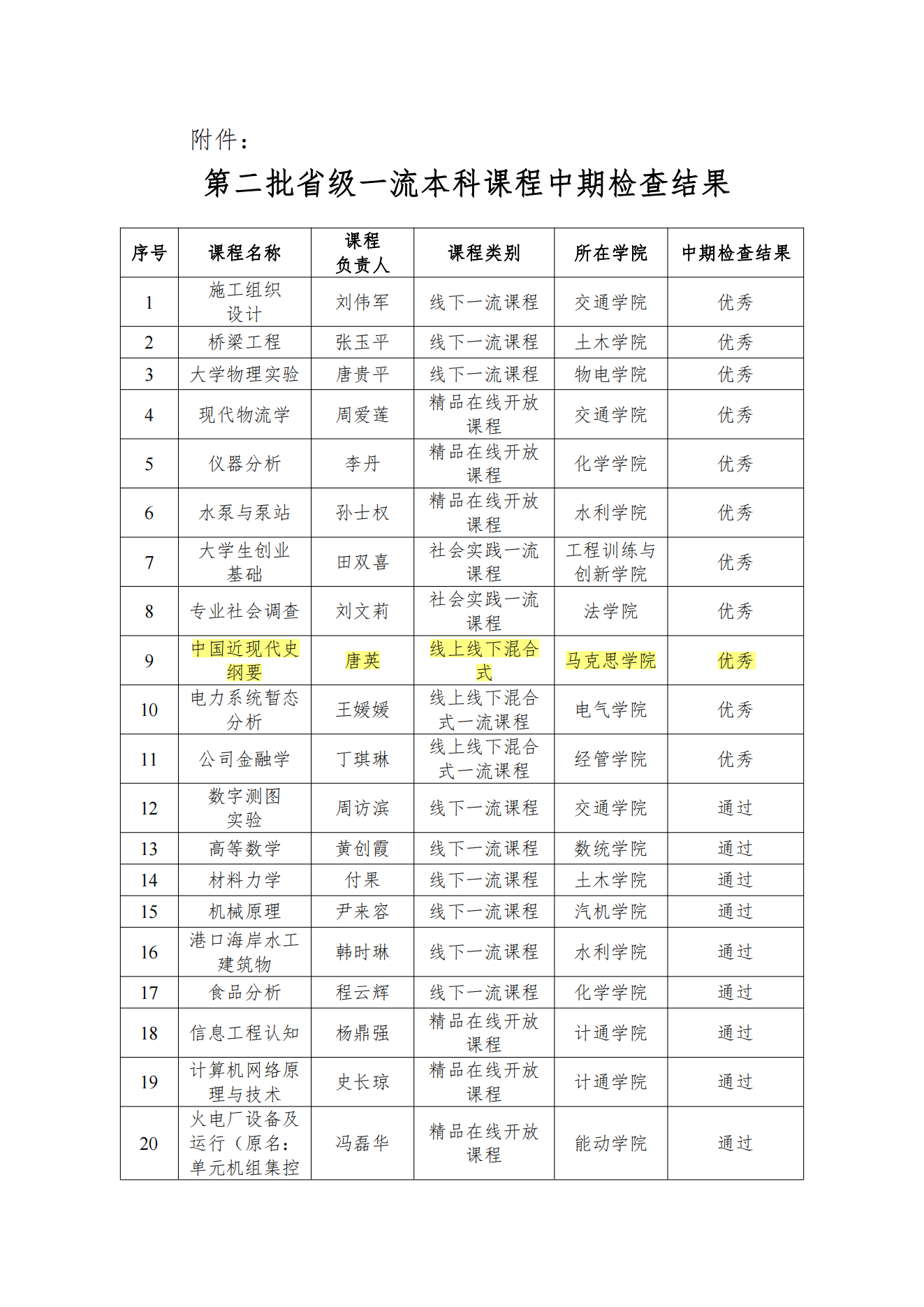 5月22日,长沙理工大学发布《关于公布第二批省级一流本科课程中期检查结果的通知》。经教师申请、学院审核、专家评审,我院唐英副教授所主持的第二批省级一流本科课程《中国近现代史纲要》中期检查获评“优秀”等级。
