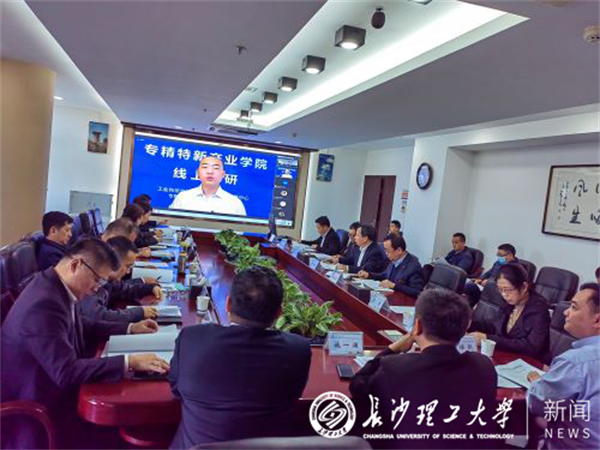 工信部中小企业发展促进中心调研负责人介绍了“专精特新产业学院”项目建设的背景、意义及此次线上调研会的要求,充分肯定了我校申报项目建设情况。