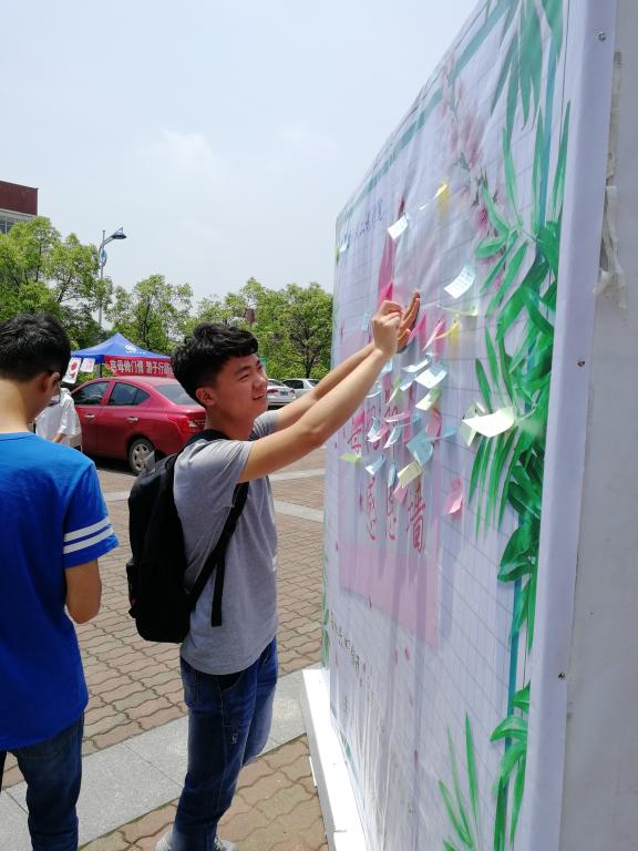 盛夏的五月,天空中绽放着赤红的阳光,由汽车学院第十五届分团委学生会资助部承办的五月诚信感恩月活动之感恩母亲于5月24日上午10点在甘饴园前坪拉开序幕。活动分为两个模块。秉承着“爱在心头里,大声说出爱”的主旨,为同学们提供一个平台表达对母亲的爱,特此设立了一面感恩墙,让爱在校园里传递;观影活动提倡“明诚信,知感恩”的高尚品德,选择以母爱为题材的影片《结婚礼服》,旨在唤起大家内心的共鸣,感受母爱的伟大、提高感恩意识。