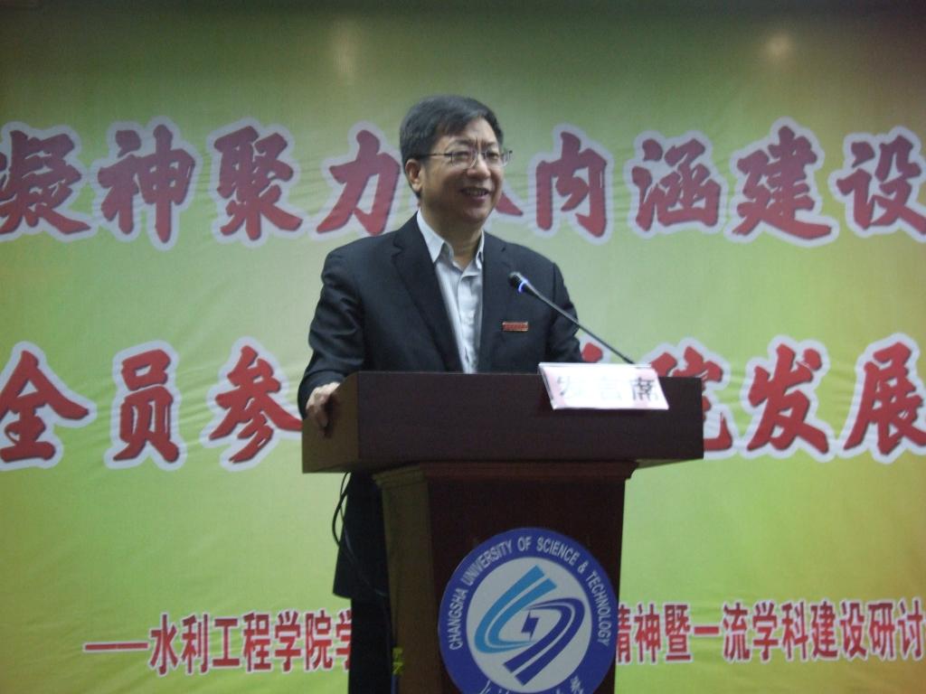 水利工程学科负责人、副校长蒋昌波做“凝神聚力,砥砺前行,共创水利工程学院新辉煌”报告,详细分析了学院学科发展现状,提出了“坚持发展理念,坚持以师生为中心,坚持全面深化改革,坚持抓重点、补短板、强弱项”的发展思路,从专业建设、学科建设、平台建设、打造队伍、国际化、体制和机制6个方面阐述了今后的行动计划。