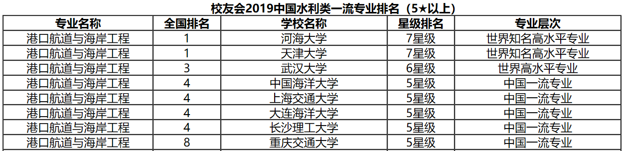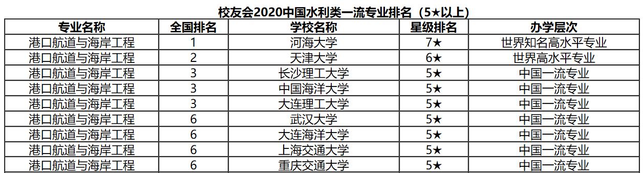 近日,由全国第三方大学评价咨询机构艾瑞深校友会网(Cuaa.Net)撰写的《2020中国大学评价研究报告——高考志愿填报指南》一书由科学出版社出版发行。在最新发布校友会2020中国水利类一流专业排名榜单上,长沙理工大学水利工程学院港口航道与海岸工程专业跻身全国第三位,同中国海洋大学、大连理工大学并列。这是该专业自2018、2019年连续两年全国排名第四后,在办学水平、人才培养能力和质量上的又一次提升。