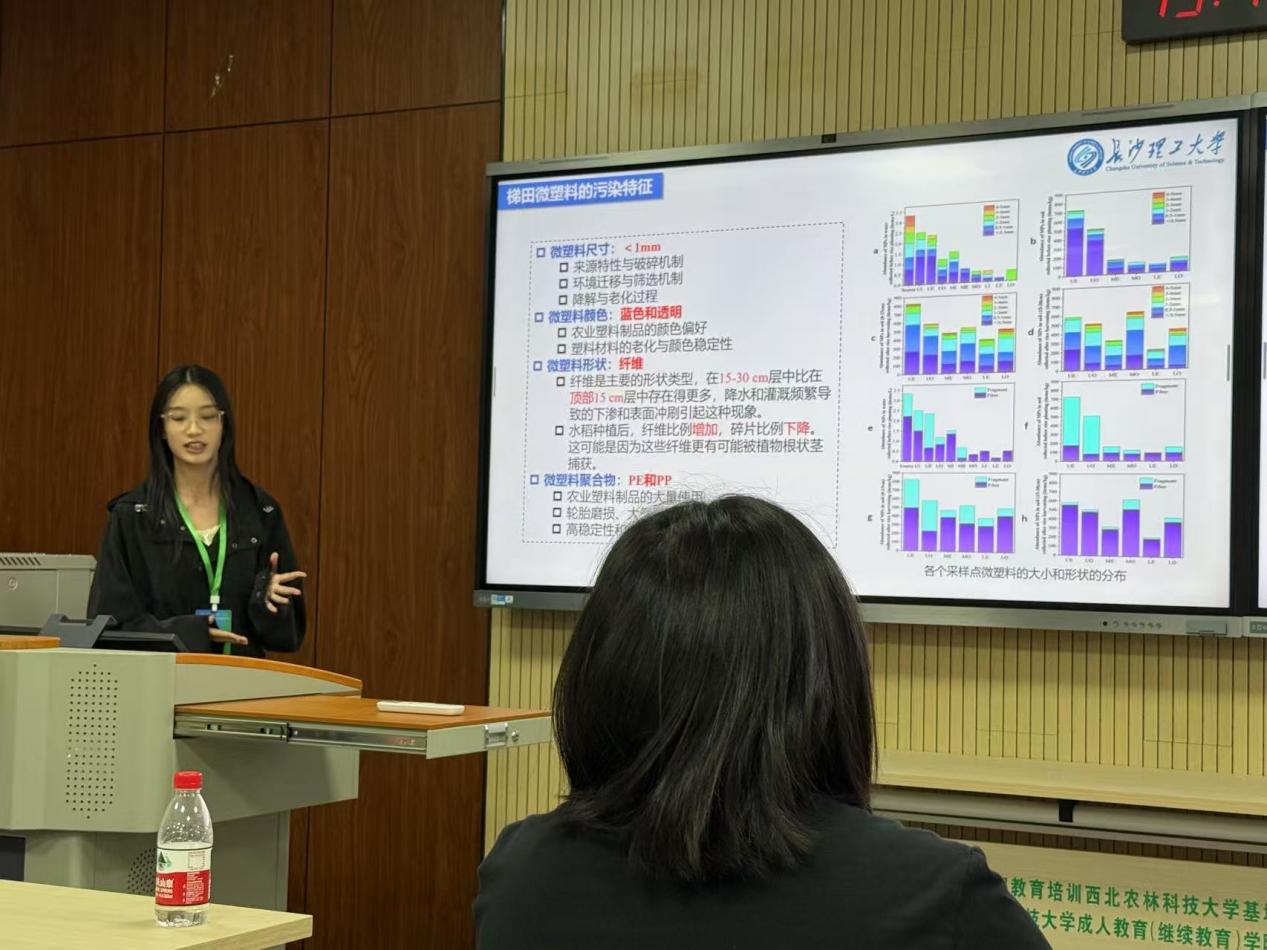 我院教师文晓凤课题组研究生刘如意、本科生邱艺鸣参加了会议,刘如意在会上作了题为《湖南省典型灌区微塑料污染特征研究》的报告,邱艺鸣作了题为《洞庭湖水体与微塑料表面附着微生物群落差异分析》的报告,并与相关学者进行了深入交流,得到了参会专家的好评。