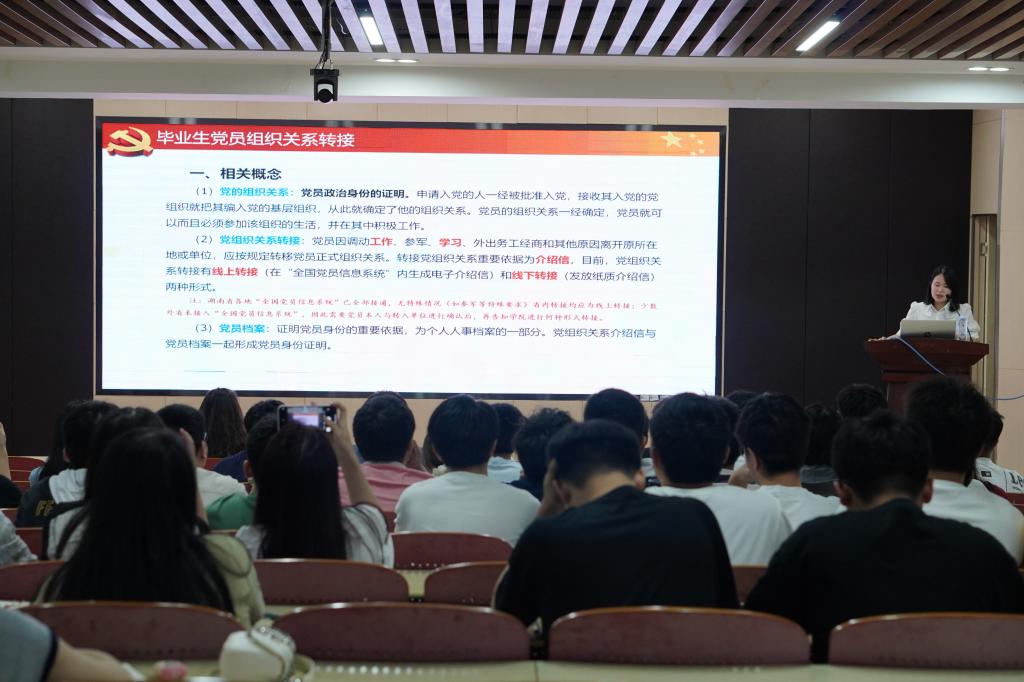 綦丽就毕业生党员党组织关系转接工作进行了详细讲解,着重强调了毕业生党员党组织关系、党员档案的重要性,呼吁党员们认真对待,及时办理好党员组织关系转接相关手续。她指出,这项工作也是党员们自觉履行党员义务,遵守党的纪律的重要体现。