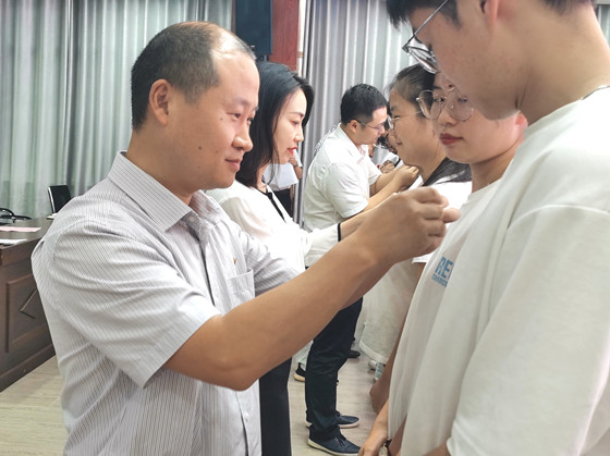 学院党委领导为获奖集体和个人颁发奖状,并为今年新发展的预备党员授予党员徽章,将党的理想信念传递给新一批党员。全体师生党员在党旗前重温了入党誓词,再次向党表达了自己的初心和使命。
