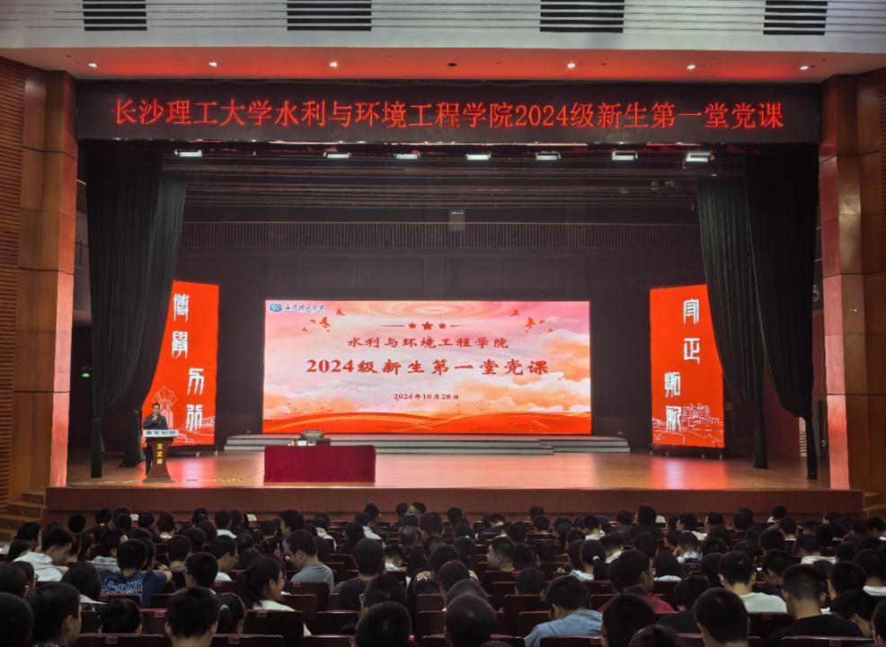 10月28日晚,水利学院在云塘校区大会堂举行2024级新生第一堂党课,学院党委书记喻玲娜为951名2024级研究生、本科生新生讲授第一堂党课。