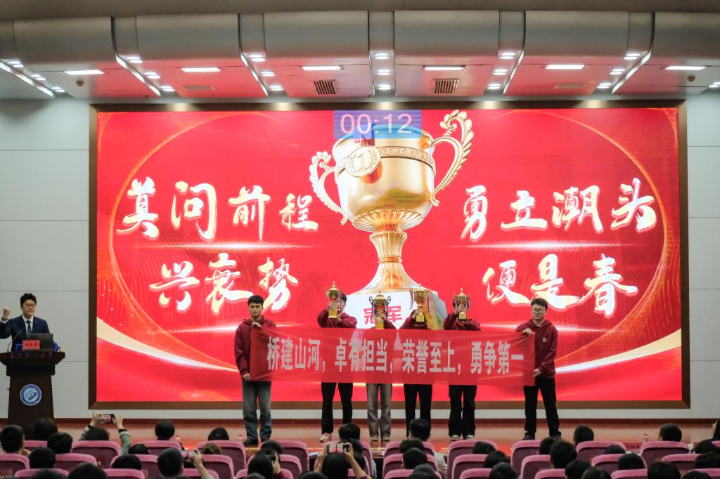 在刚刚落幕的2024年度校"示范班集体"评选暨风采展示活动中,我院“冠军班级”桥卓2101班以卓越的班级建设成果、鲜明的育人特色和昂扬的集体风貌,从全校21个进入决选班级中脱颖而出,以总分第一的成绩斩获"示范班集体"桂冠。