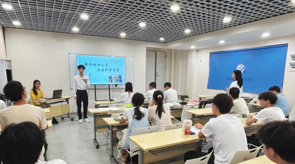 6月27日下午,长沙理工大学物理与电子科学学院在敏行轩四栋一站式学生社区开展“解码物理公式,品读科学传奇”主题宣讲比赛。六位宣讲员以通过抽签抽取的物理公式为主题,解读物理公式背后的故事,以声线为笔、情感为墨,在沉浸式的宣讲画卷中,为现场学子展开了一场跨越时空的物理探索之旅,让科学精神的星火播撒在青春舞台上。