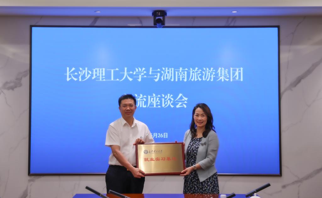 会上,双方举行了“长沙理工大学就业实习基地”授牌仪式及校外实习基地协议签订仪式。方琼代表学校向湖南旅游集团授牌,刘建新与胡澜共同签署校外实习基地协议。双方将联合打造实习实践平台,为学生提供文旅策划、新媒体运营、品牌传播等岗位的实习机会,并探索定制化人才培养、课题研究等合作模式。刘建新表示,此次合作是推动学院人才培养的重要举措,致力推动专业建设与产业需求同频共振。
