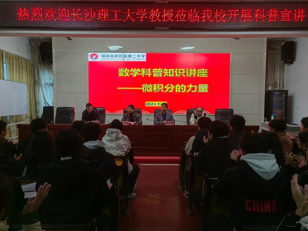 12月6至7日,数统学院党委副书记兼副院长郑忠辉、院实验中心主任熊寿遥副教授,文学与新闻传播学院魏明革副教授赴湖南省新田县第一中学和新田县第二中学举行授牌仪式暨招生宣讲。新田县教育局党组书记、局长邓振斌及相关领导,新田县第一中学和新田县第二中学领导班子出席授牌仪式,两所中学的1400余名师生聆听科普知识讲座和招生宣讲。