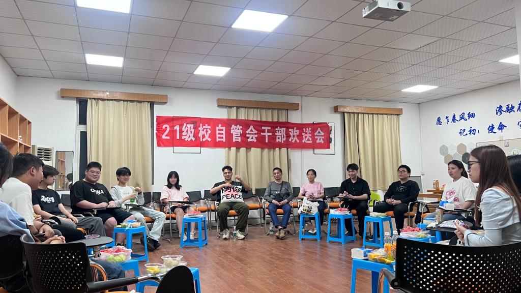 6月11日晚7点,21级学生社区自主管理委员会干部欢送会在金盆岭校区2教302举行,这也是金盆岭校区自管会举办的第一届干部欢送会,公寓中心朱虹、金雄迈两位老师