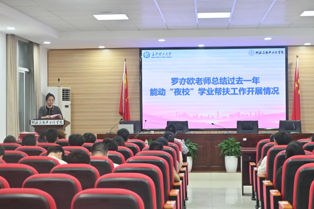 4月16日下午,能源与动力工程学院在新能源2号大楼502会议室举办“夜校”学业帮扶总结表彰大会。会议由学工办胡雅妮主持,学院党委副书记兼副院长张晓烽,学工办罗亦欧、陈颖,全体辅学志愿者和部分被帮扶学员参加本次活动。