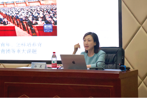 随后,杨晨为参加培训的学子进行第一次主题团课授课。她聚焦共青团历史、研会成员自身发展和未来研会工作展开,特别强调青年学子在学术科研和创新创业方面的巨大潜力,着重指出青年学生干部在“学”和“干”两方面有机统一的具体要求,并对全体学员提出了真诚的鼓励和殷切的期待:“为者常成,行者常至,历史不会辜负实干者。学习的目的在于运用,干事是检验学习成果的练兵场。”